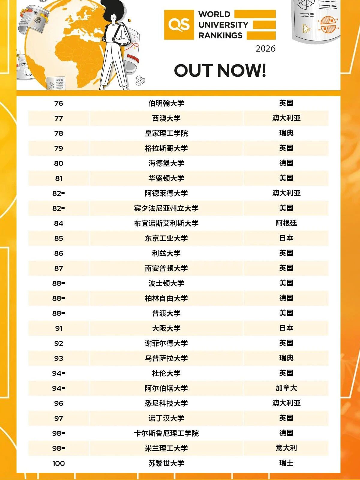 万众期待的2026QS全球大学排名上新啦!
