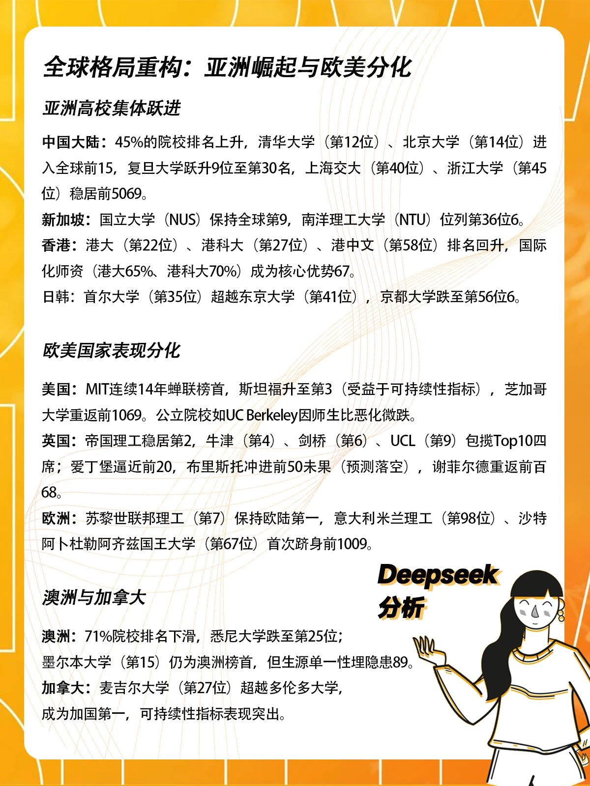 DeepSeek锐评称:“2026QS排名印证了学术多极化趋势,传统强校靠声誉稳盘,新兴势力以科研投入与国际化为‘矛’实现破局。”